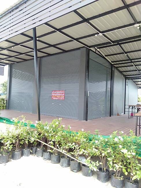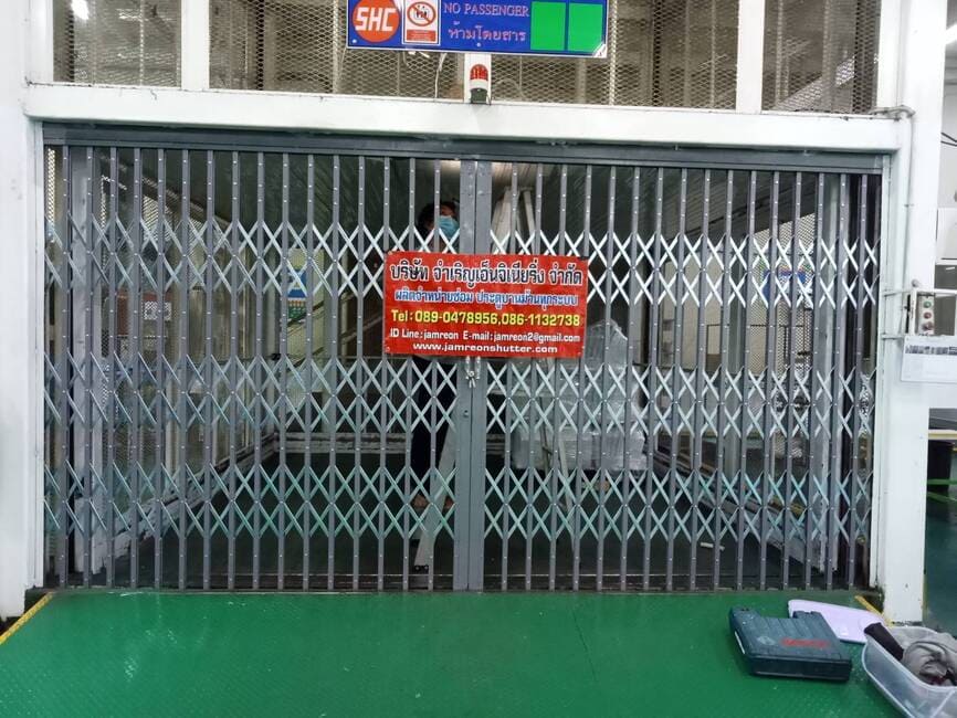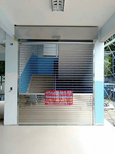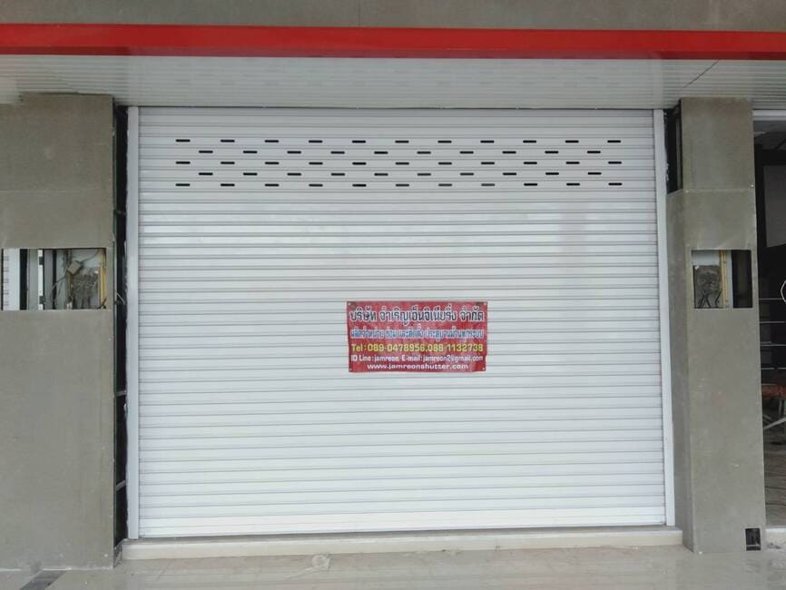 • ประตูม้วนไฟฟ้า แบบมอเตอร์ขับ ระบบไฟฟ้าพร้อมรีโมท ควบคุมการเปิดปิด มีโซ่สาวตอนไฟดับ